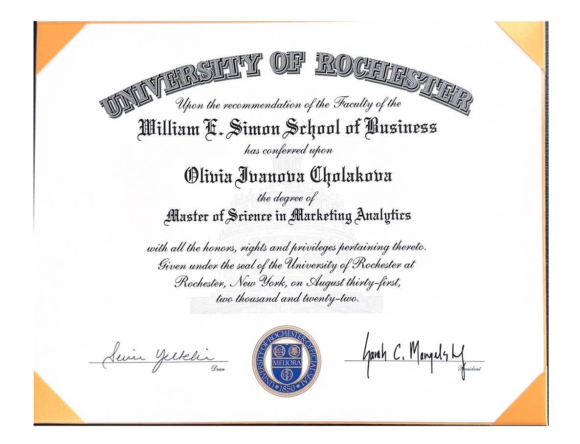 Olivia holds a Master of Science degree in marketing analytics from Simon Business School
