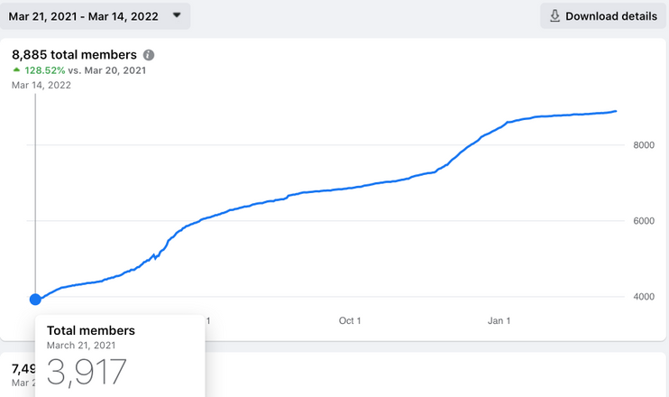 128.52% Facebook group members increase over a one year period